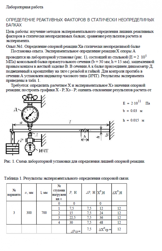 Лабораторная работа. Определение реактивных факторов в статически неопределимых балках.