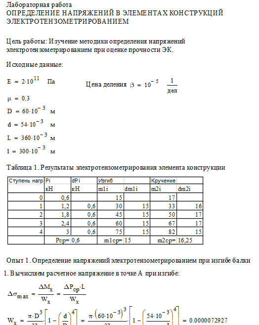 Цель работы: изучение методики и определение напряжений в элементах конструкций электротензометрированием; сравнение расчетных и экспериментальных значений напряжений.