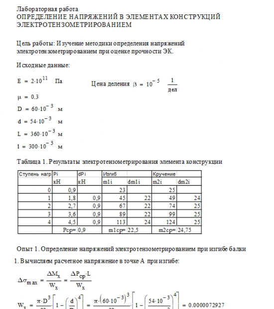 Цель работы: изучение методики и определение напряжений в элементах конструкций электротензометрированием; сравнение расчетных и экспериментальных значений напряжений.
