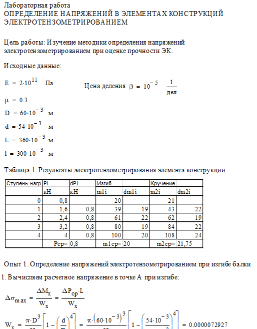 Цель работы: изучение методики и определение напряжений в элементах конструкций электротензометрированием; сравнение расчетных и экспериментальных значений напряжений.