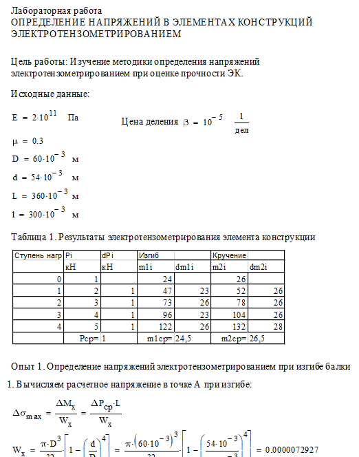 Цель работы: изучение методики и определение напряжений в элементах конструкций электротензометрированием; сравнение расчетных и экспериментальных значений напряжений.
