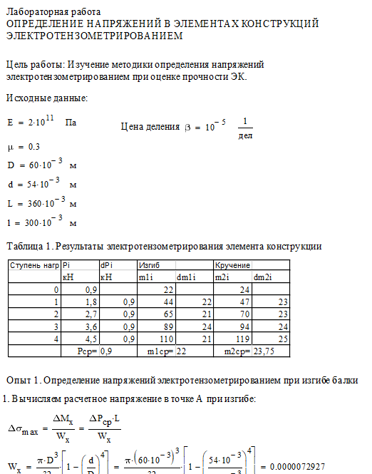 Цель работы: изучение методики и определение напряжений в элементах конструкций электротензометрированием; сравнение расчетных и экспериментальных значений напряжений.