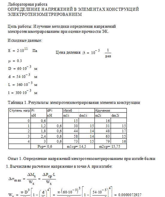 Цель работы: изучение методики и определение напряжений в элементах конструкций электротензометрированием; сравнение расчетных и экспериментальных значений напряжений.