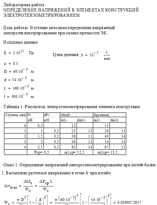 Цель работы: изучение методики и определение напряжений в элементах конструкций электротензометрированием; сравнение расчетных и экспериментальных значений напряжений.