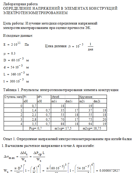 Цель работы: изучение методики и определение напряжений в элементах конструкций электротензометрированием; сравнение расчетных и экспериментальных значений напряжений.