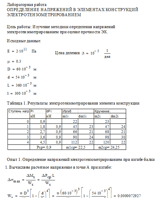 Цель работы: изучение методики и определение напряжений в элементах конструкций электротензометрированием; сравнение расчетных и экспериментальных значений напряжений.