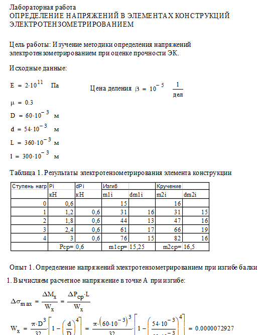 Цель работы: изучение методики и определение напряжений в элементах конструкций электротензометрированием; сравнение расчетных и экспериментальных значений напряжений.