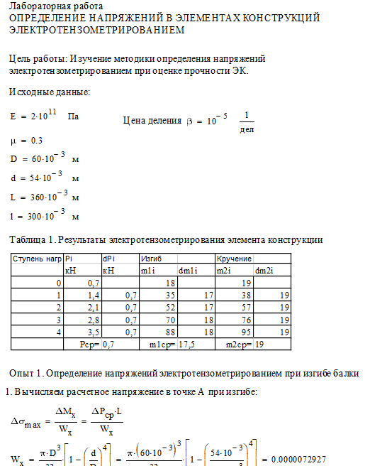 Цель работы: изучение методики и определение напряжений в элементах конструкций электротензометрированием; сравнение расчетных и экспериментальных значений напряжений.
