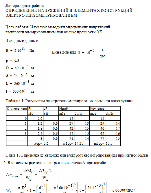 Цель работы: изучение методики и определение напряжений в элементах конструкций электротензометрированием; сравнение расчетных и экспериментальных значений напряжений.