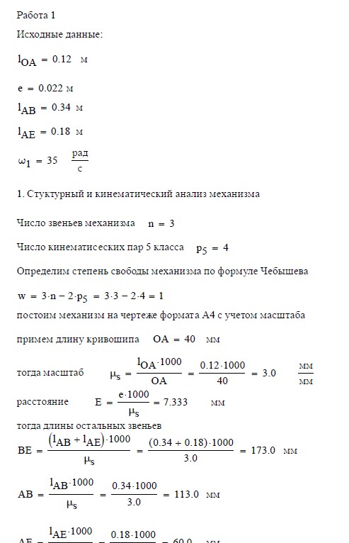 Задание №1. Схема кривошипно-шатунного механизма