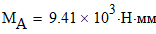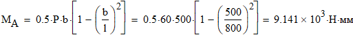 Рис. 4. Расчетная зависимость опорного момента Ма от дествующей силы Р и соответствующие экспериментальные результаты.