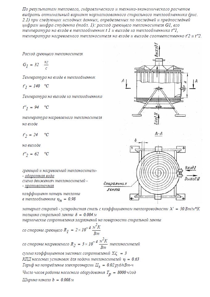 По результатам теплового, гидравлического и технико-экономического расчетов выбрать оптимальный вариант нормализованного спирального теплообменника (при следующих…