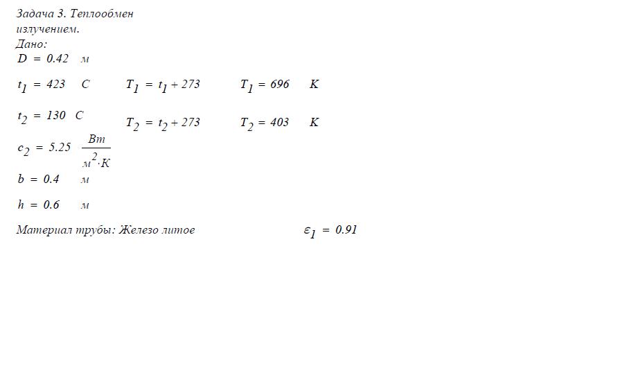 Задание № 3. Теплообмен излучением Стенка трубопровода диаметром d = …[мм] нагрета до температуры t1=…[°С] и имеет коэффициент теплового…