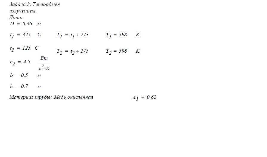 Задание № 3. Теплообмен излучением Стенка трубопровода диаметром d = …[мм] нагрета до температуры t1=…[°С] и имеет коэффициент теплового…