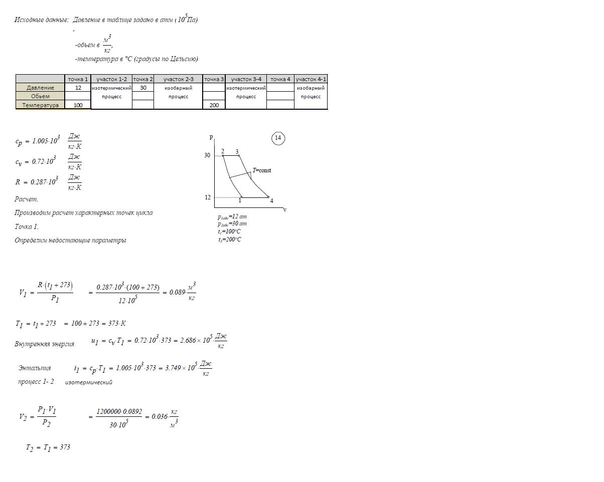 1. Определить параметры p, v, T, u, i для основных точек цикла.