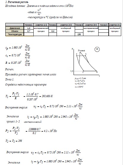 3. Определить работу цикла l, термический к.п.д. цикла и индикаторное давление pi.