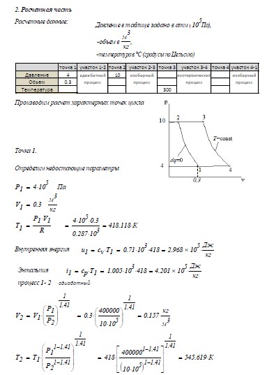 1. Определить параметры p, v, T, u, i для основных точек цикла.