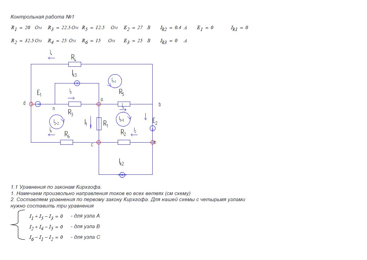 1. Составить на основании законов Кирхгофа систему уравнений для расчета токов во всех ветвях схемы.