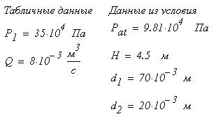 Вода в количестве Qp подается в эжектор (рис.6) центробежным насосом, создающим давление перед соплом Рх. Размеры эжектора следующие: диаметр подводящей трубы d1 = 70мм…