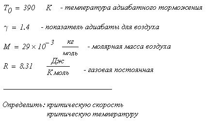 Найти критическую скорость α* и критическую температуру Т* для потока воздуха, если температура торможения T0