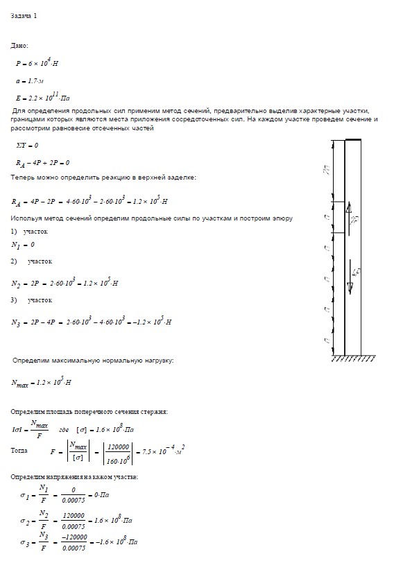 Задача 1 Для стержня (рис. 1) постоянного сечения следует: 1. Построить эпюру продольных сил N, напряжений σ, относительных деформаций ε и…
