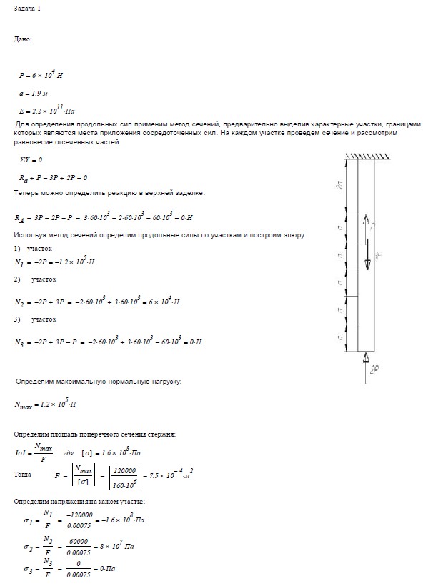 Задача 1 Для стержня (рис. 1) постоянного сечения следует: 1. Построить эпюру продольных сил N, напряжений σ, относительных деформаций ε и…