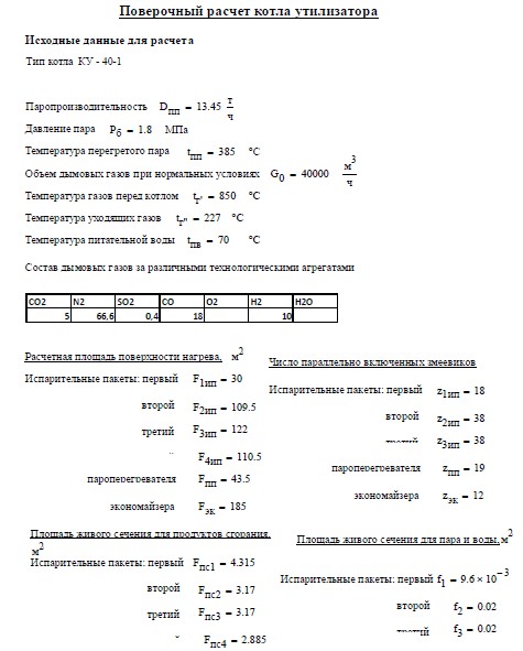 Расчет котла - утилизатора Определить количества теплоты, воспринимаемой поверхностями нагрева котла-утилизатора при заданных параметрах и сравнение расчетной…