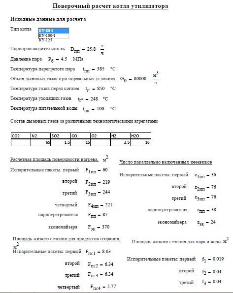 Расчет котла - утилизатора