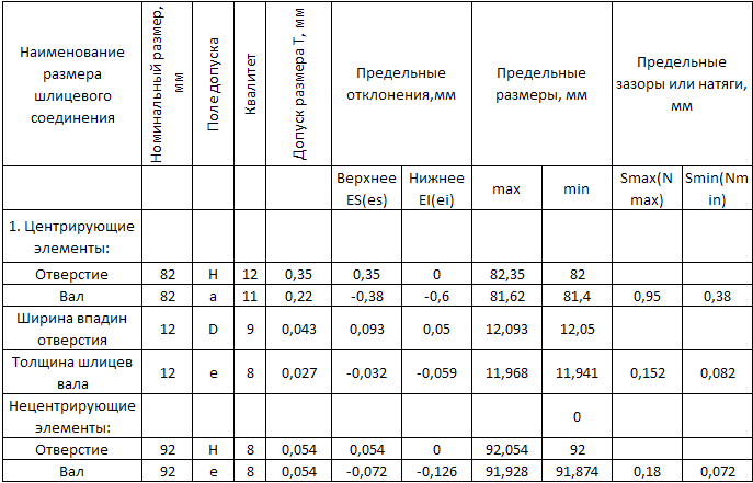 4.3. Определить предельные размеры всех элементов деталей шлицевого соединения и заполнить таблицу 4.1. .