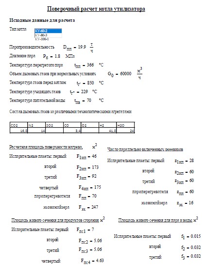 Расчет котла - утилизатора Определить количества теплоты, воспринимаемой поверхностями нагрева котла-утилизатора при заданных параметрах и сравнение расчетной…