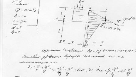 Пренебрегая потерями напора, определить: диаметр трубы d и избыточное давление Рb в т.В, при данных приведенных в табл.