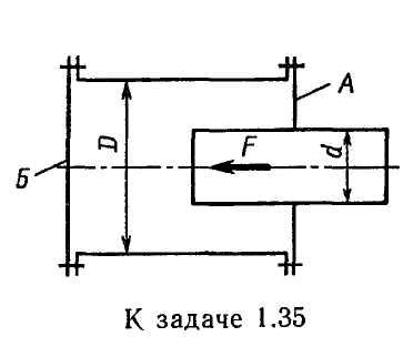 Задача 1.35. Определить нагрузку на болты крышек А и Б гидравлического цилиндра диаметром D = 160 мм, если к плунжеру диаметром d=120 мм приложена сила F = 20…