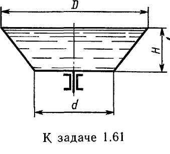 Задача 1.61. Определить минимальную частоту вращения п, которую нужно сообщить сосуду, изображенному на схеме, вокруг его вертикальной оси для полного его опорожнения. Размеры: D = 200 мм; d=100 мм; H = 50 мм.