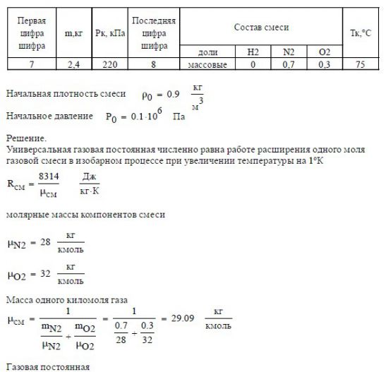 - контроль вычислений энергетических характеристик процесса выполнить по первому закону термодинамики.