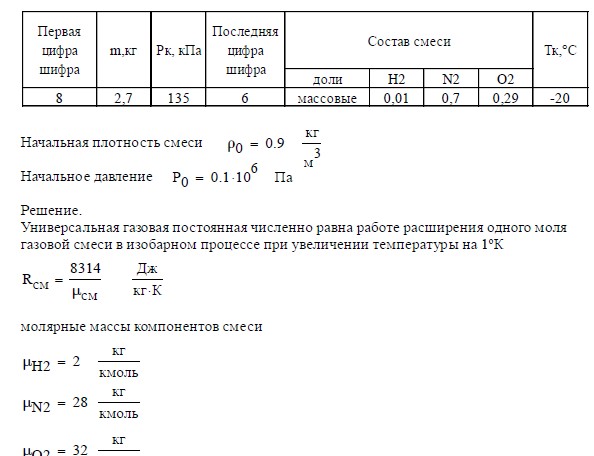 - контроль вычислений энергетических характеристик процесса выполнить по первому закону термодинамики.