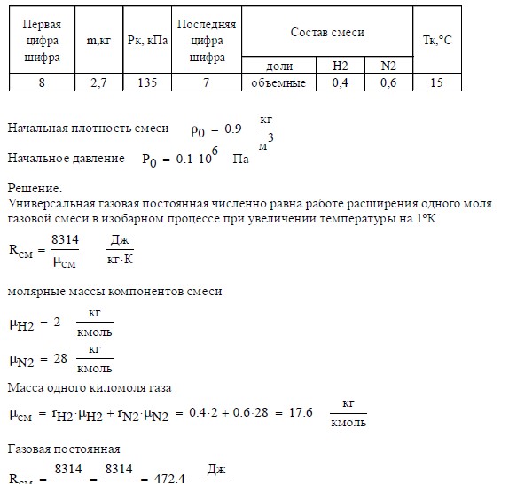 - контроль вычислений энергетических характеристик процесса выполнить по первому закону термодинамики.