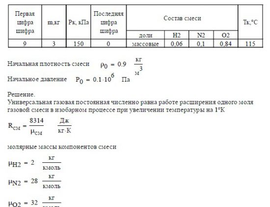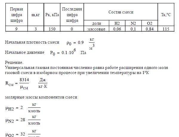 - контроль вычислений энергетических характеристик процесса выполнить по первому закону термодинамики.