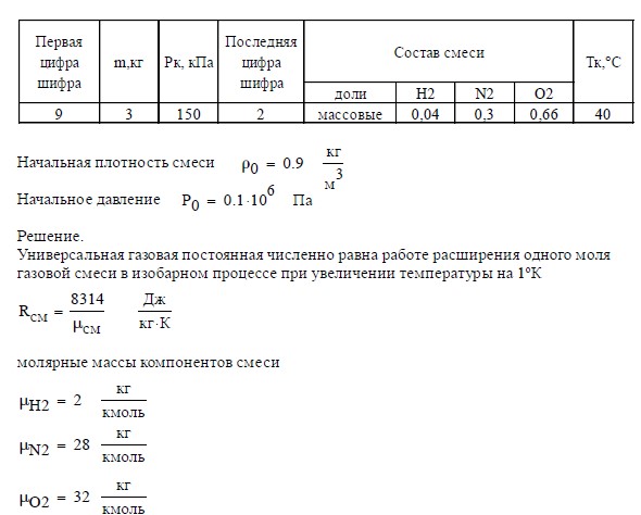 - контроль вычислений энергетических характеристик процесса выполнить по первому закону термодинамики.
