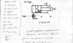 Задача 3.27. Жидкость с плотностью р = 850 кг/м3 подается от насоса в гидроцилиндр, а затем через отверстие в поршне площадью S0 = 5 мм2 и гидродроссель Д в бак (рб =…