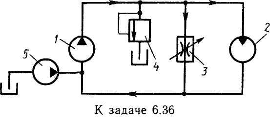 Задача 6.36. Объемный гидропривод вращательного движения с дроссельным регулированием состоит из двух гидромашин — насоса 1 и гидромотора 2, а также дросселя 3…