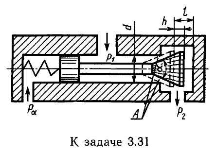 Указание. Площадь проходного сечения конусной щели А определить по упрощенной формуле Sщ = пdh sin (a/2), где h — ход клапана.
