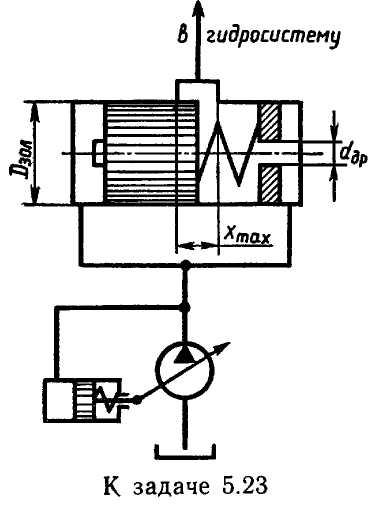 Задача 5.23. На выходе из регулируемого роторного насоса* снабженного автоматом-ограничителем давления, установлен еще ограничитель подачи, назначение которого —…