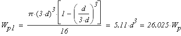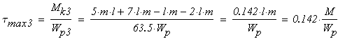 По полученным значениям строим эпюру наибольших касательных напряжений на участках вала в долях M/Wp