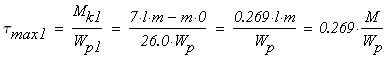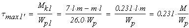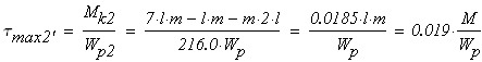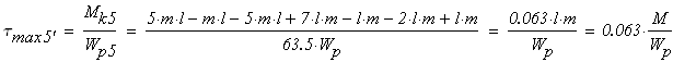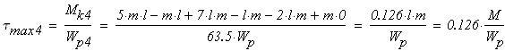 3. Построена эпюра касательных напряжений mах в долях M/Wp, где Wp = nd³/ 16 -полярный момент сопротивления сечения диаметром d вала.
