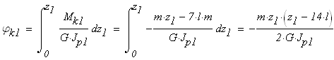 7. Используя закон Р.Гука в интегральной форме находим углы закручивания на участках вала