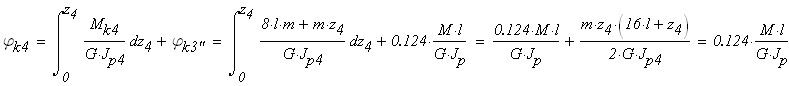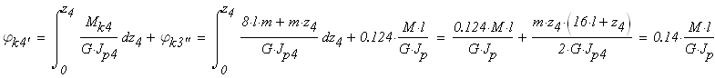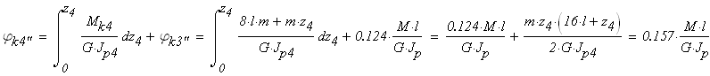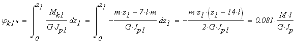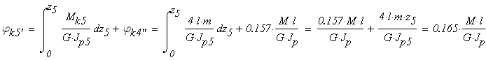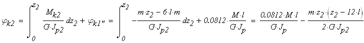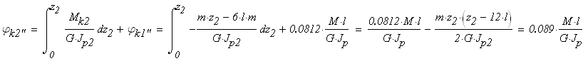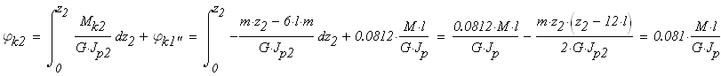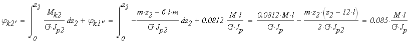 4. Построена эпюра углов закручивания φ2 в долях Ml/GJp, где Jp = nd4/ 32 - полярный момент инерции сечения диаметром d вала.