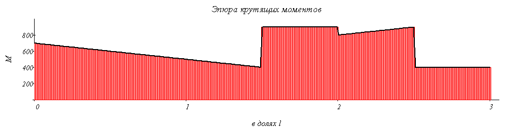 По полученным значениям строим эпюру крутящих моментов в долях М