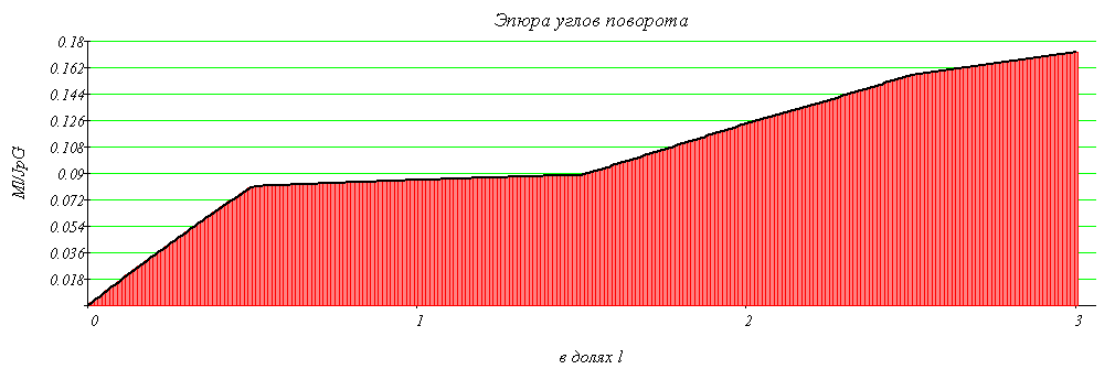 По полученным значениям строим эпюру углов закручивания в долях Ml/GJp
