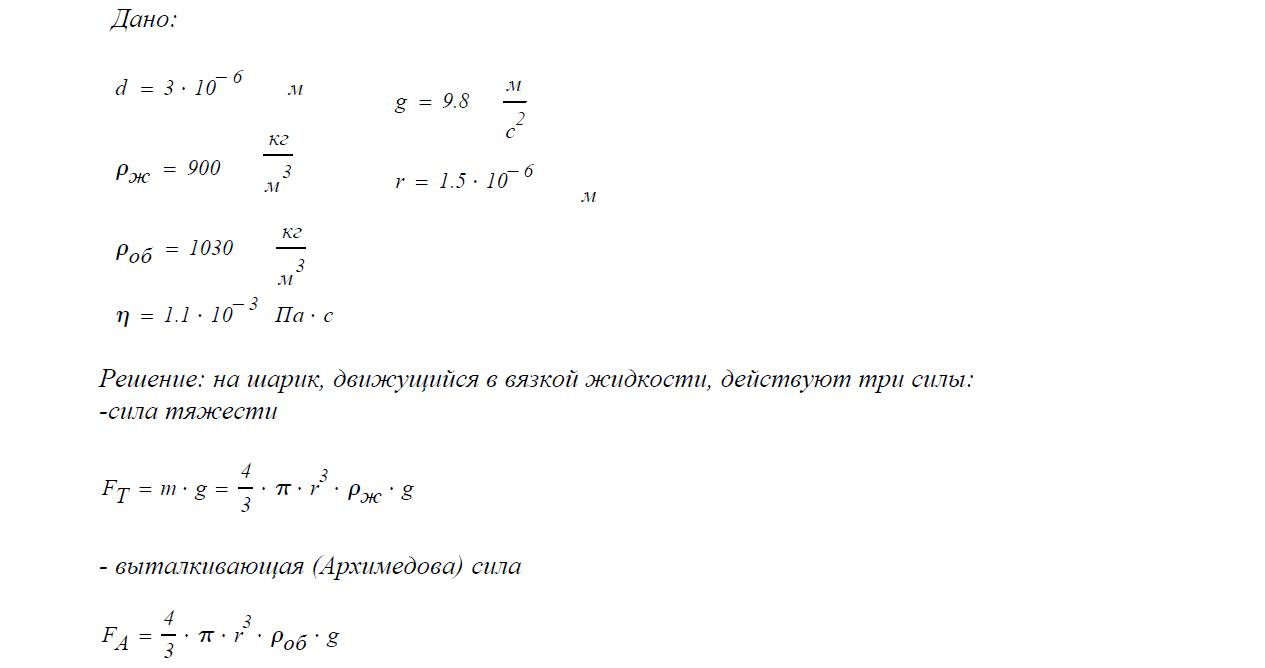 Средний диаметр жировых шариков в свежем молоке 3мкм. определить скорость всплытия этих шариков при образовании сливок, если плотность жира 900 кг/м^3 , плотность обрата 1030 кг/м^3 и динамический коэффициент вязкости обрата 1,1 мПа*с